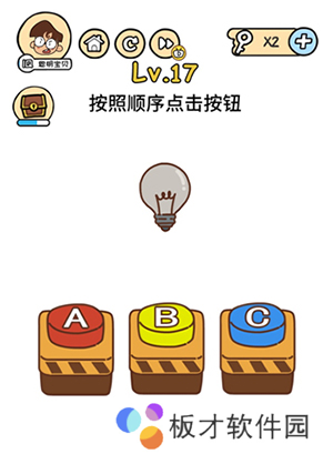 脑洞大大大第17关怎么过?第17关的题目是“按照顺序点击按钮”,在这一关中我们只要按照灯泡颜色顺序去按按钮即可,下面小编就为大家带来了脑洞大大大第17关攻略。