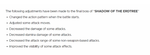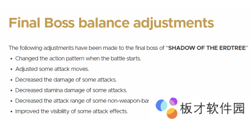 公告中首先提到,将对DLC“黄金树幽影”最终BOSS“约定之王拉塔恩”进行调整,调整内容包括改变战斗开始时的行为模式、调整了一些攻击招式、减少一些攻击的伤害、减少一些攻击对耐力的伤害、减少非武器攻击的攻击范围以及改进了一些攻击效果的可见性。