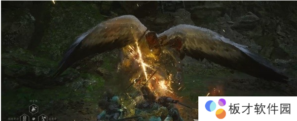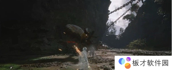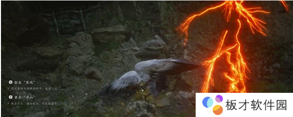 第一次重击后王灵官百分百会飞天攻击,在他飞天俯冲下来的时候直接使用聚形散气,让影子吸引注意力然后我们继续蓄力棍势,在王灵官落地后直接上去重击,后面立马接化身技幽魂打硬直和伤害,这么一套下来王灵官的血条基本一半。