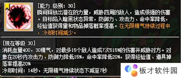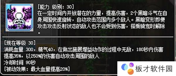 8、黑暗变形,强力buff技能,而且带有无敌,但升级会增加冷却时间,所以建议根据自己打法点1级或者点满。