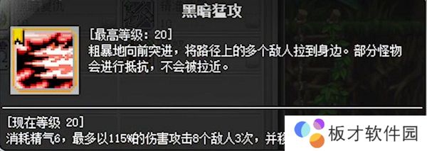 2、黑暗猛攻前期可以点,是前期比较好用的位移技能。