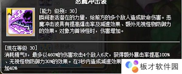 6、恶魔冲击波后期点满,后期打boss的主力技能,但因为后摇长用起来不太舒服。