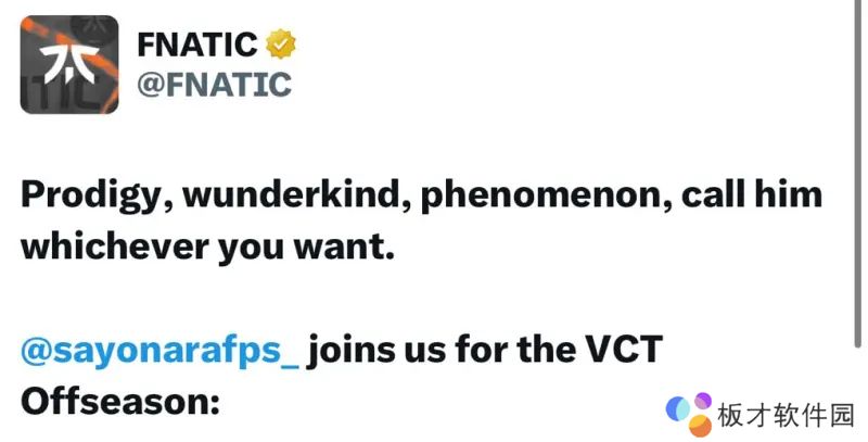 Fnatic正式宣布签下Ștefan “Sayonara” Mitcu,这位年仅16岁的天才选手将在VCT休赛期期间加入队伍,出战红牛Home Ground和Riot Games ONE等赛事。由于年龄限制,他暂时无法参加2025赛季的正式比赛。