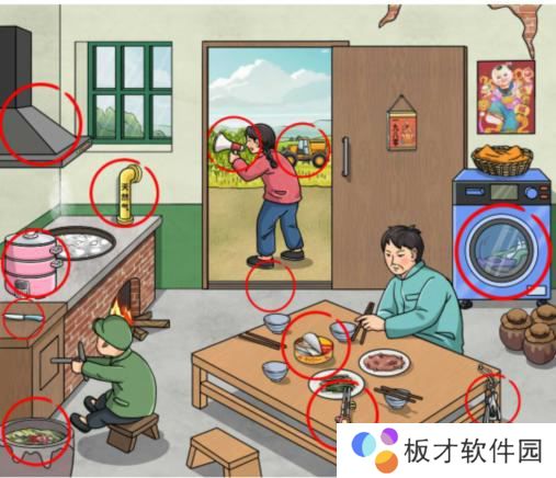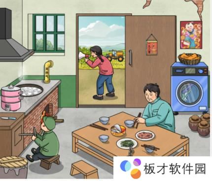 文字玩出花怀旧喊吃饭中需要在1980年代的场景内找到12处不符合时代的地方,多数地方通过点击即可找到,需要注意的是2个地方,一个是左下方罐子里的泡菜,二是滑动餐桌角挂的东西。