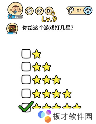 脑洞大大大第9关怎么过?第9关的题目是“你给这个游戏打几星”,这一关超级简单,直接点击星最多的即可,下面小编就为大家带来了脑洞大大大第9关攻略。