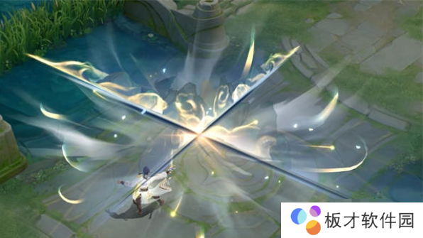 5、三技能:李白持剑挥出山水画卷裹剑气而出,凌厉剑光四向穿梭。
