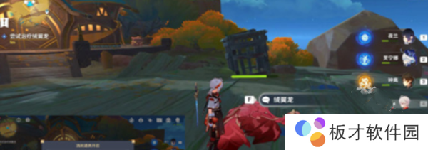 3、接受任务后,遵照指示与绒翼龙互动,跟随小土龙行进。