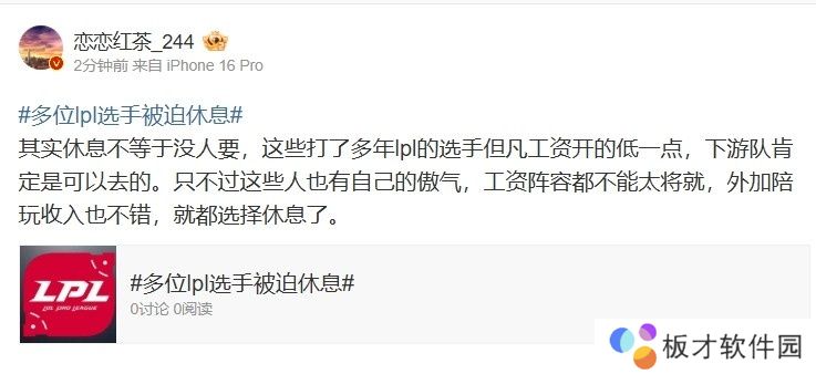直播吧12月17日讯 2024LPL冬季转会期结束,多位LPL选手选择休息,对此LPL知名爆料人发文点评:这些人也有自己的傲气,工资阵容都不能太将就,外加陪玩收入也不错,就都选择休息了。