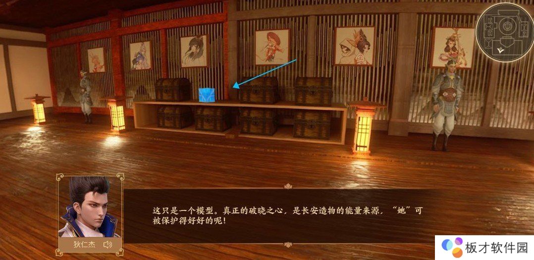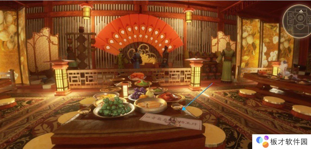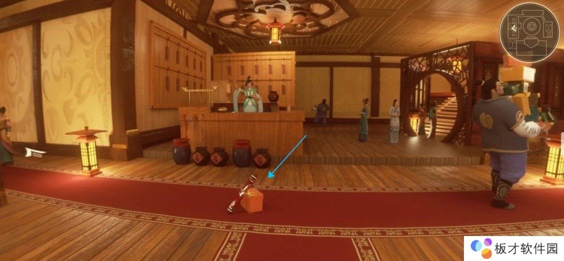 2、根据箭头提示进入房间内,这些都是有提示的,就是闪亮的地方,正上方是杨玉环的应援手幅,点击就可以看到线索。