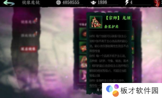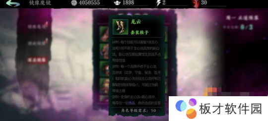 玩家装备了这个龙套之后,然后选择技能,装备心法,就会有两个空槽,然后就可以放两个心法。