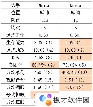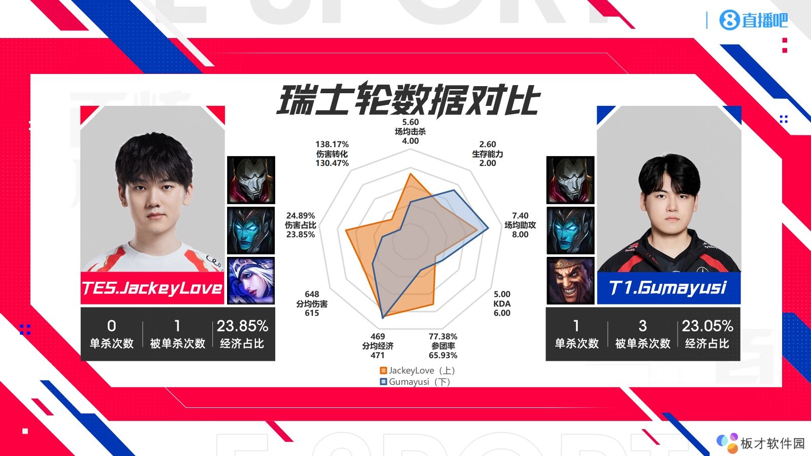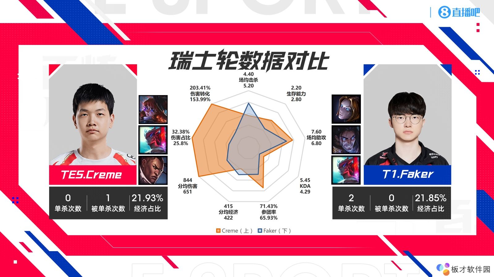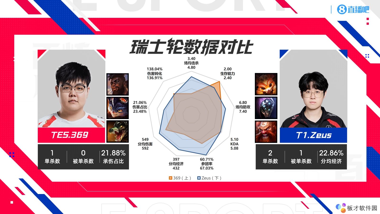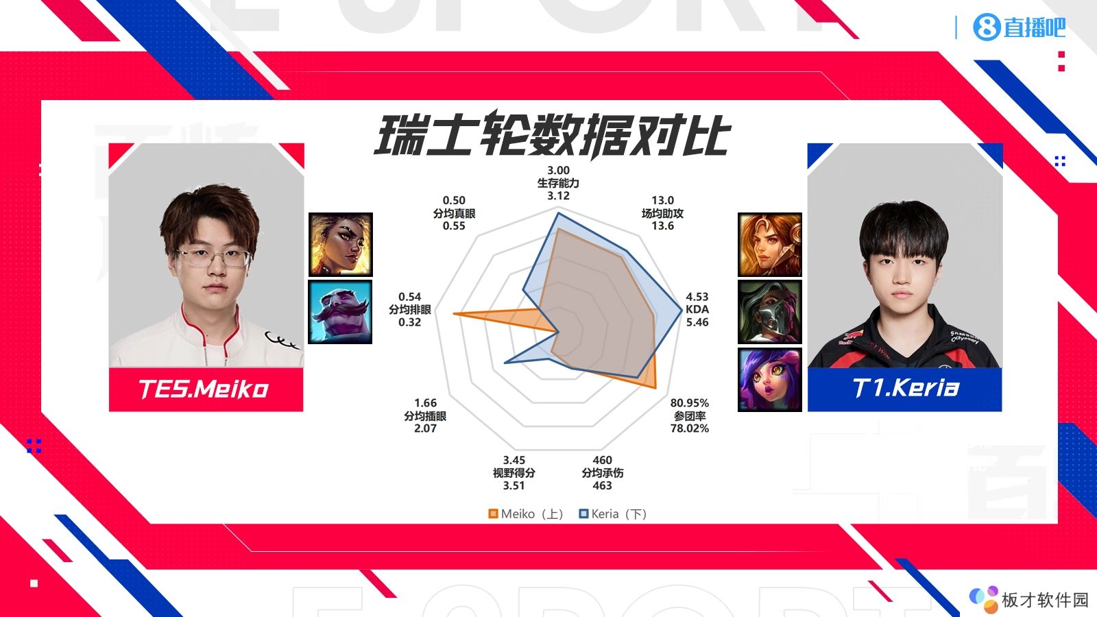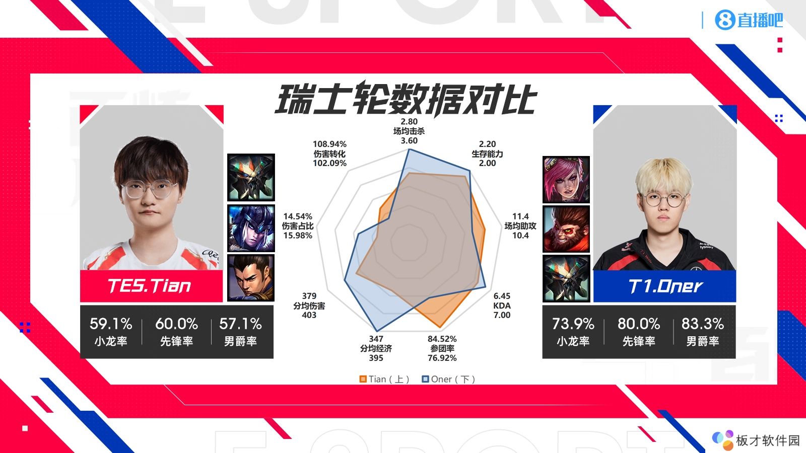 今日小编整理八强淘汰赛各支队伍对阵的瑞士轮数据对比,第三场是LPL二号种子TES对阵LCK四号种子T1。