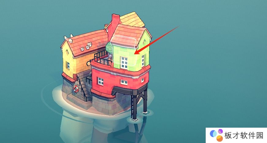 2、然后在屏幕左侧选择一种颜色放置在中间的房屋上面。