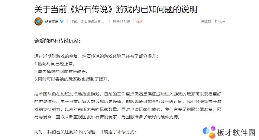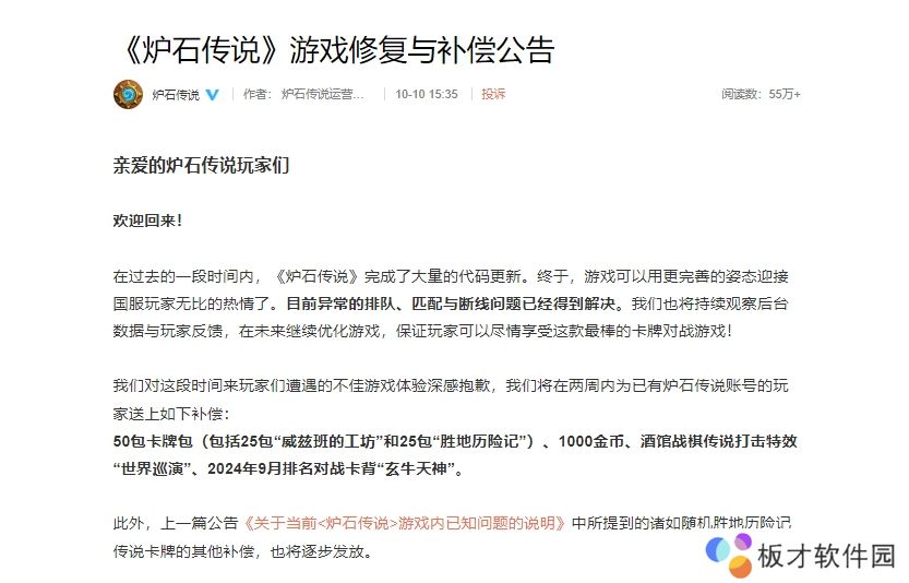 此外,上一篇公告《关于当前<炉石传说>游戏内已知问题的说明》中所提到的诸如随机胜地历险记传说卡牌的其他补偿,也将逐步发放。