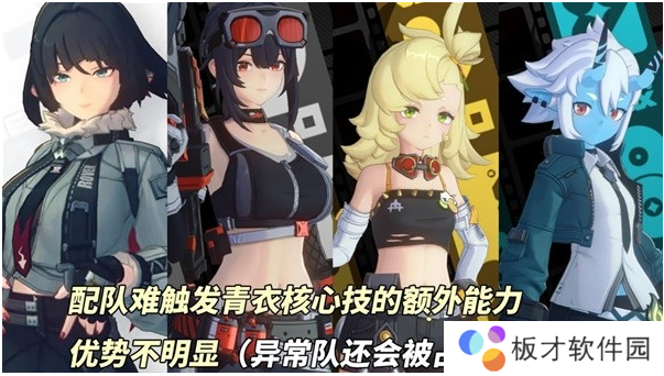 ③【较难搭配】格莉丝、简、派派、苍角。青衣核心技的额外能力要求强攻或刑侦特勤组队友,这4位角色触发不了,会亏损青衣的普攻额外失衡值,以及冲击力转攻击能力,导致优势发挥不完全。