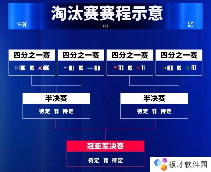 根据淘汰赛抽签结果, LNG、WBG、BLG以及LCK赛区的一号种子HLE汇聚上半区,下半区则由TES、T1、GEN及FLY组成。8支队伍将在各自半区展开新一轮厮杀,而上下半区的最后胜者们,将从巴黎前往伦敦,角逐最后的冠军奖杯!