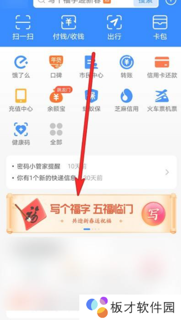 首先我们需要打开自己的支付包,然后打开写福字的选项。