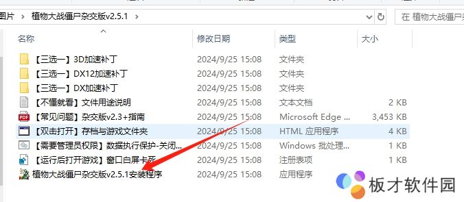 4、下载完成后,在本地点开文件包,点击[植物大战僵尸v2.5.1安装程序]。