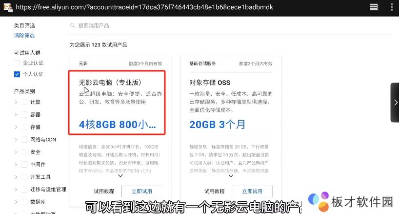 3、进入第二页可以看到这边就有一个无影云电脑的产品。