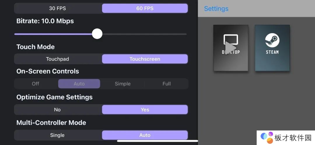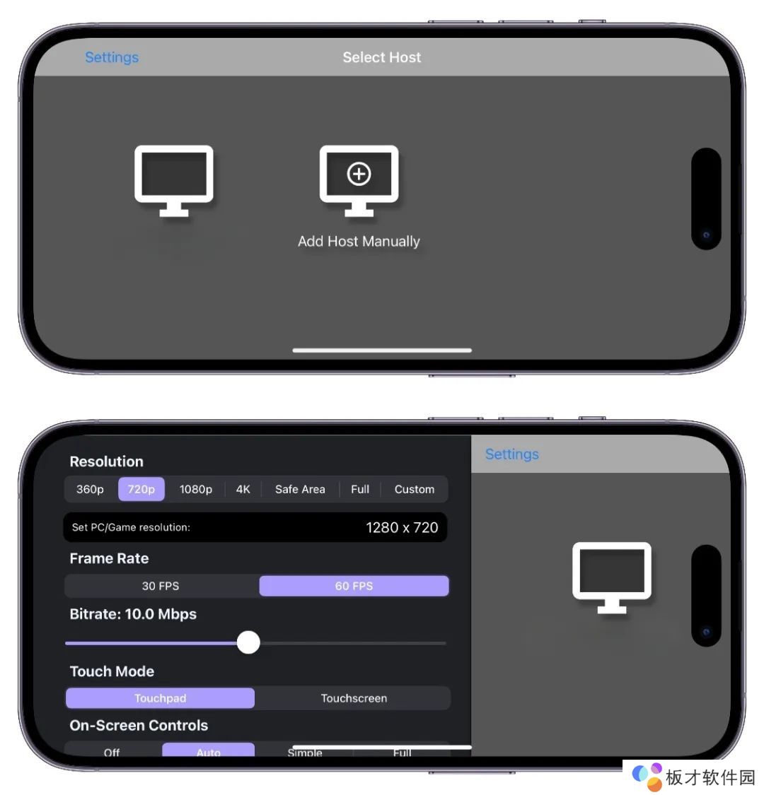 3、在iOS上打开Moonlight,连接到电脑上,这个时候显示的画面是有很多控制键。