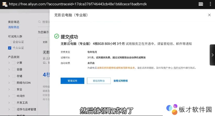 6、可以看到一分钱不用就能白嫖三个月且800小时的云电脑。点击立即试用,然后就领取成功了。