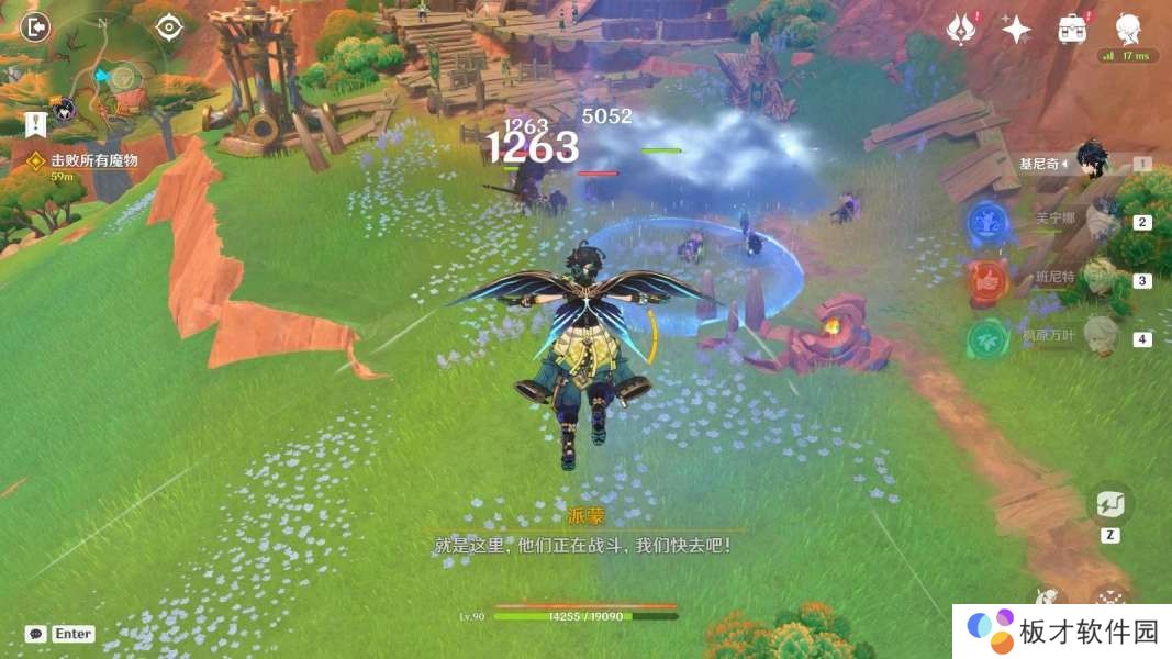 击败丘丘人,与战士对话1分钟