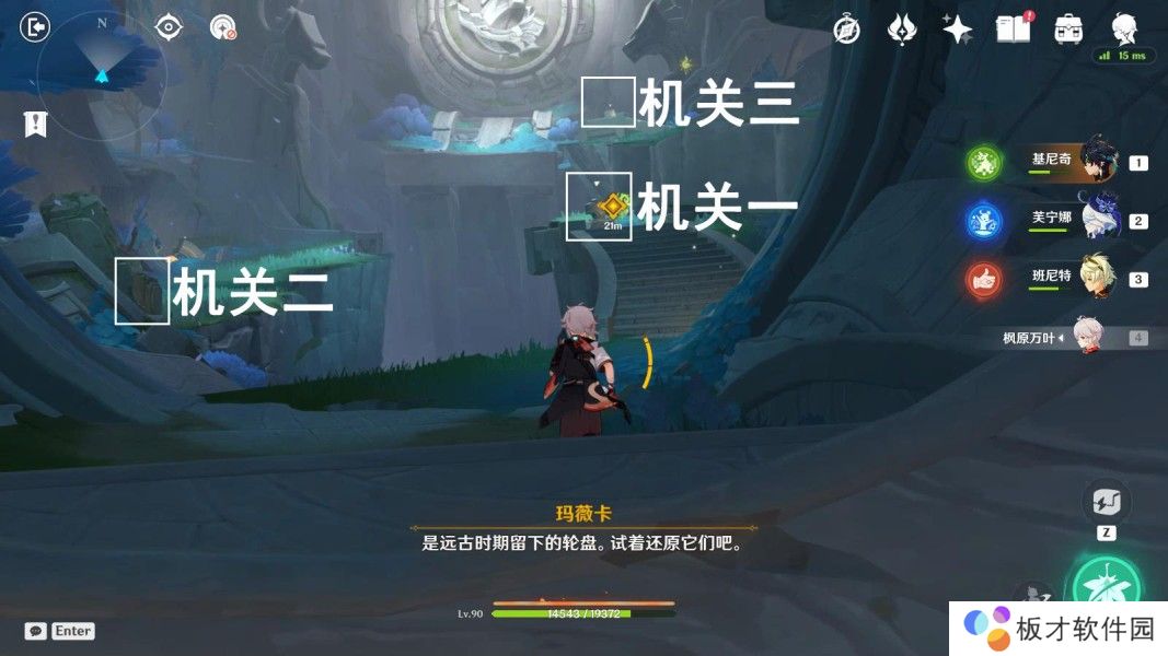 往地图的西方向走,前往3处机关