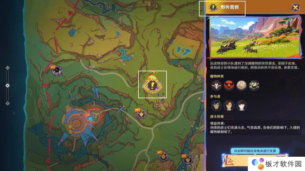4.查看地图,选择支援地点