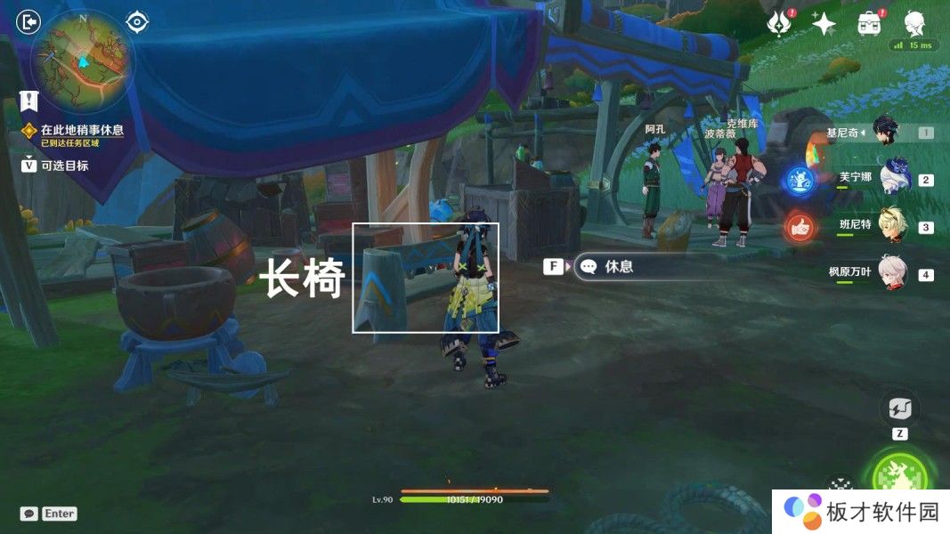 往地图的北方向走,交互长椅“休息”,选择“休息吧。”