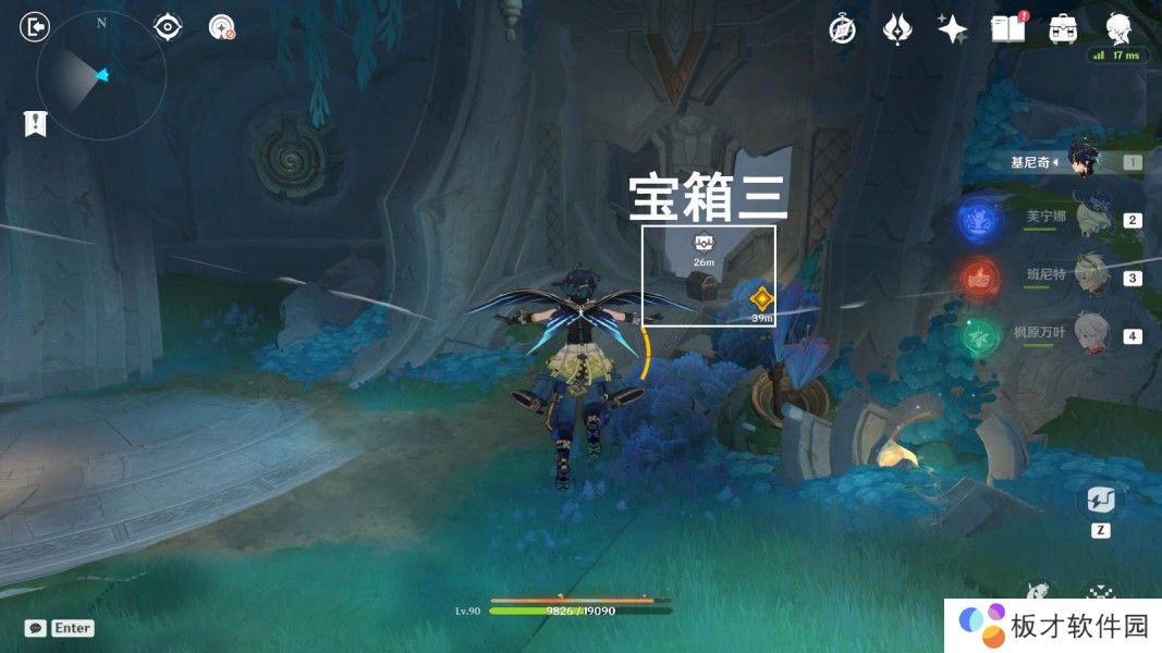 往地图的南方向侧面通道走,击败愚人众,获得宝箱②