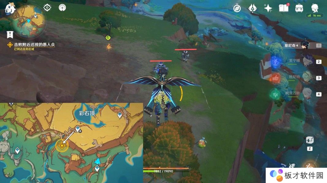传送彩石顶西南方向地下锚点,往地图的西南方向走,击败愚人众