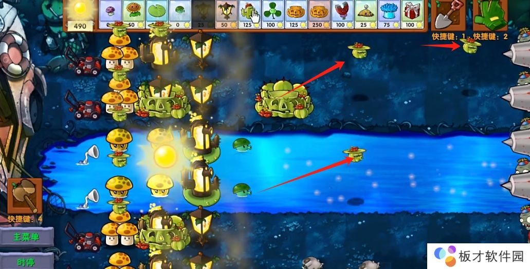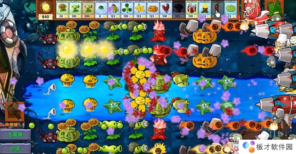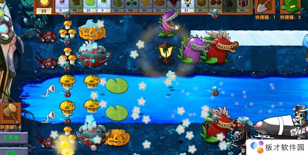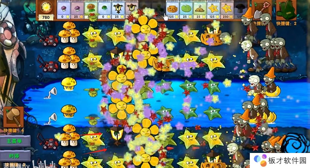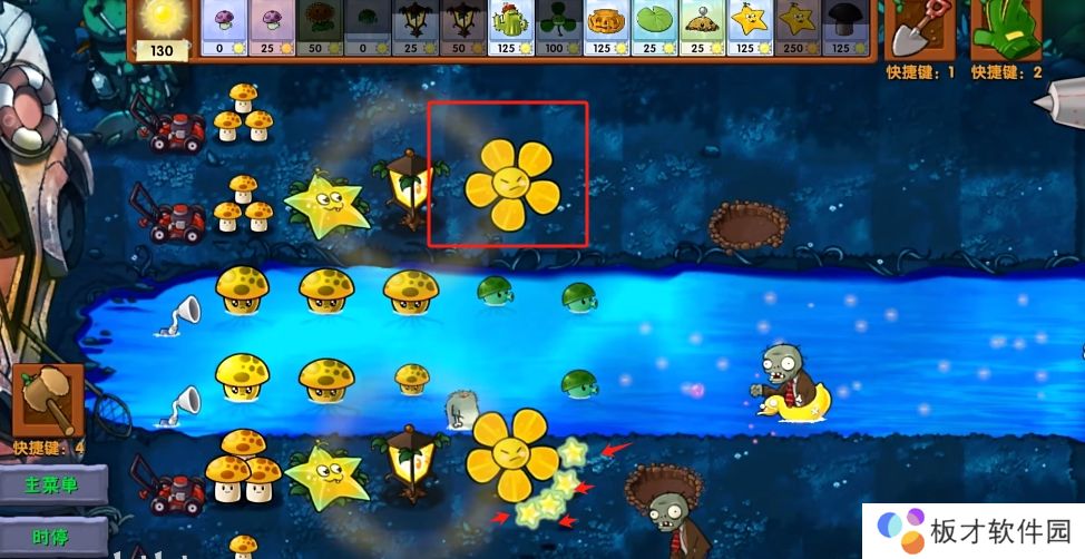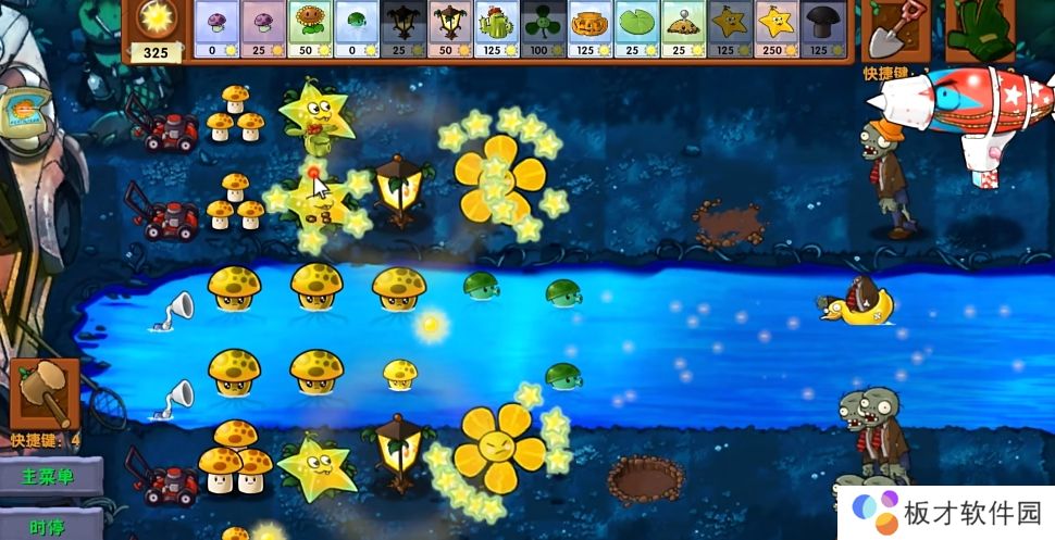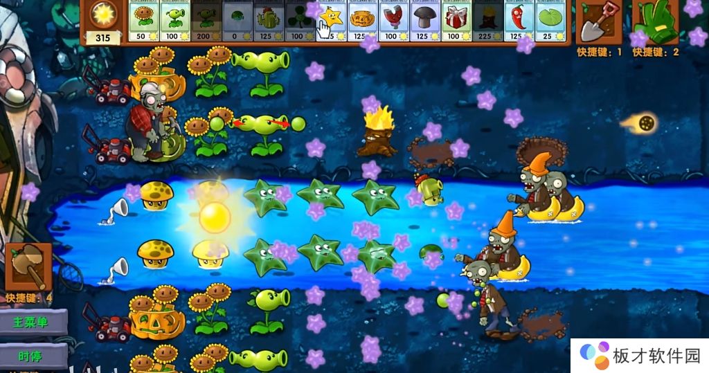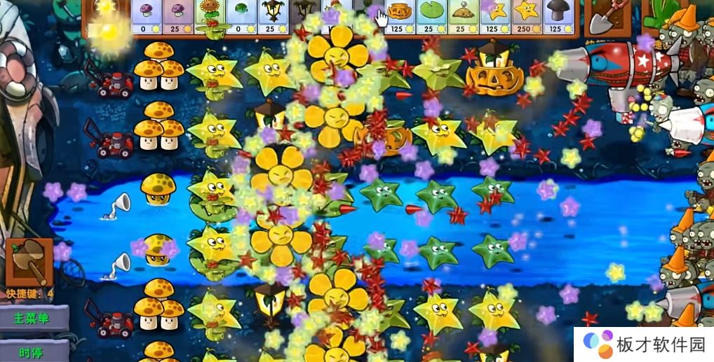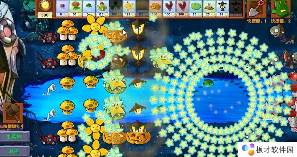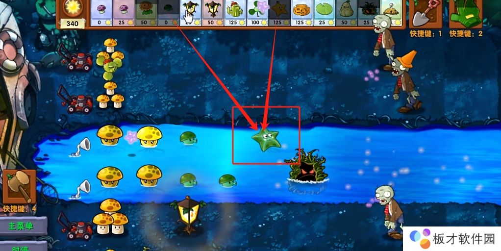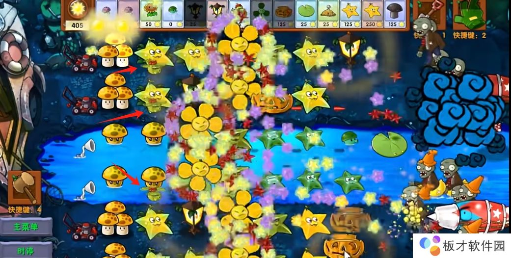 5、海星射手的星星是四散攻击的,有了仙人掌杨桃可以帮助星星回来向僵尸方向进行攻击。