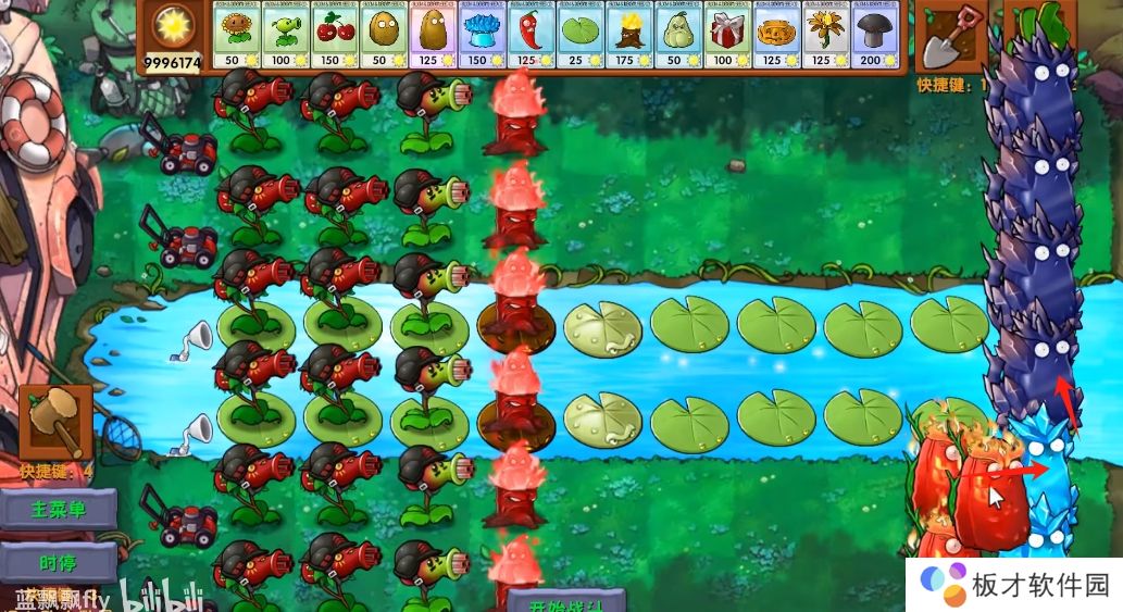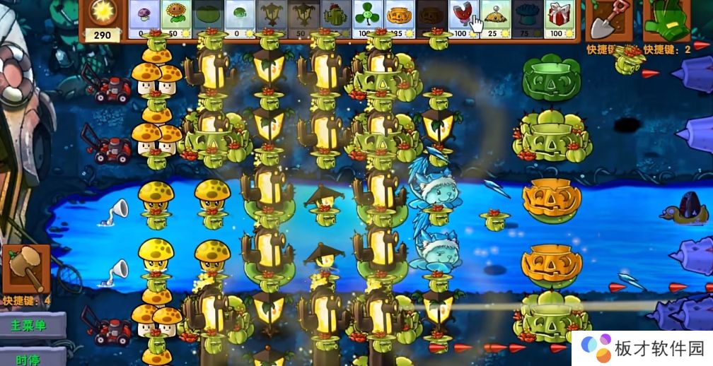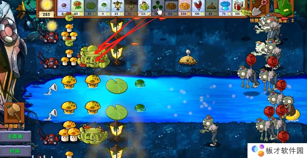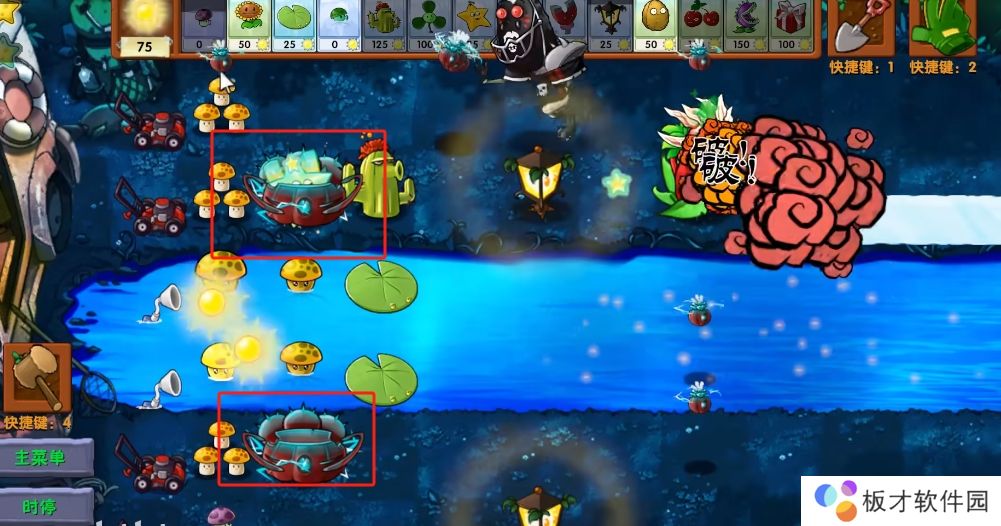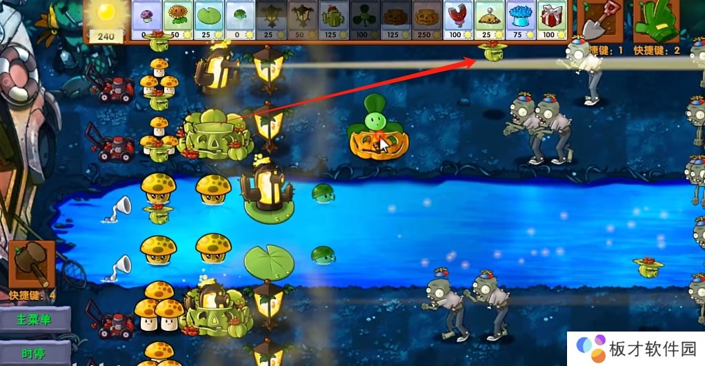 5、在三叶南瓜掌里面还可以种植其他植物,为其他植物提供一个护盾,自己本身也是可以造成伤害。