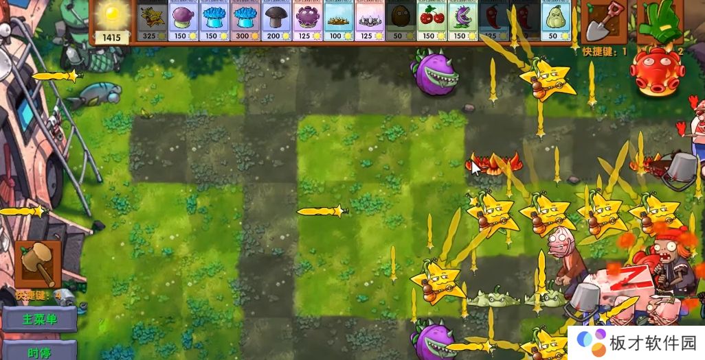 每隔一段时间可以生成一个大星星,向僵尸方向落下,变成几十颗星星攻击。
