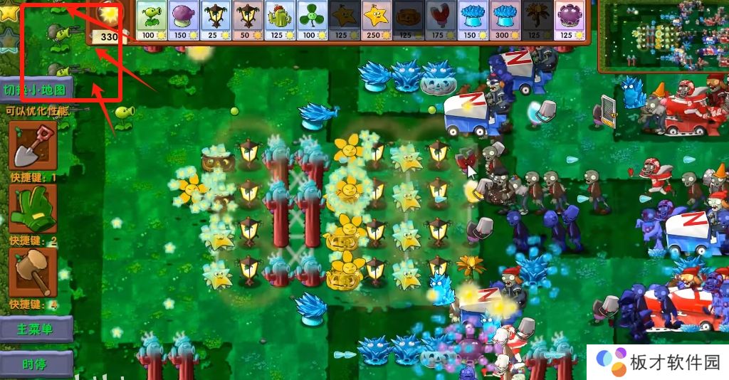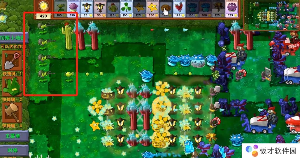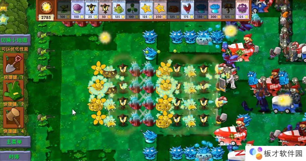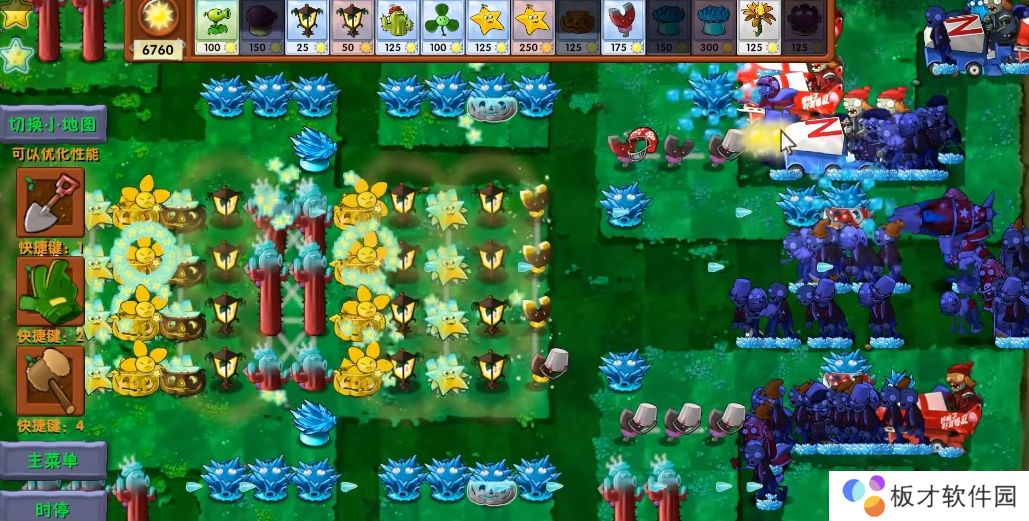 1、开始时总会附带一个浮空仙人球,不是单独植物而是本体的附属,会锁定全屏的僵尸攻击。