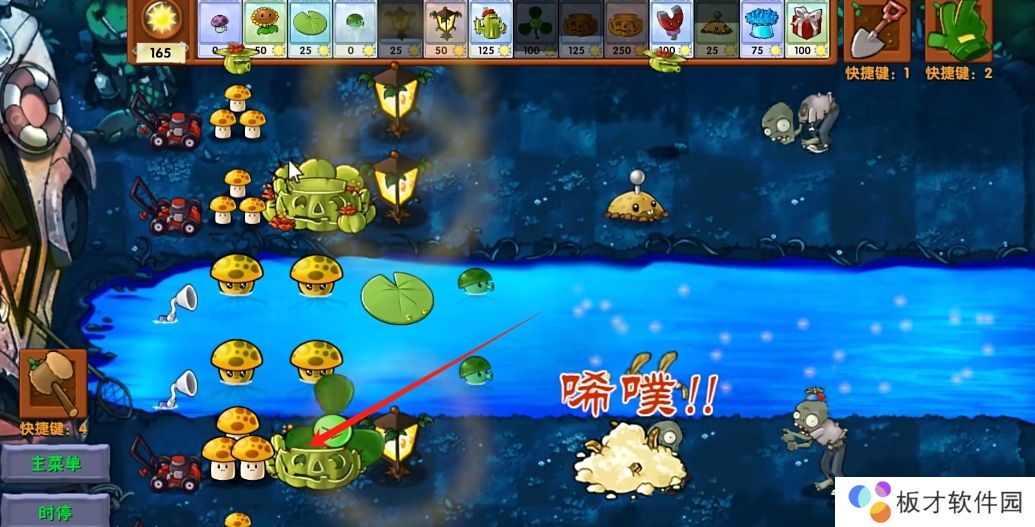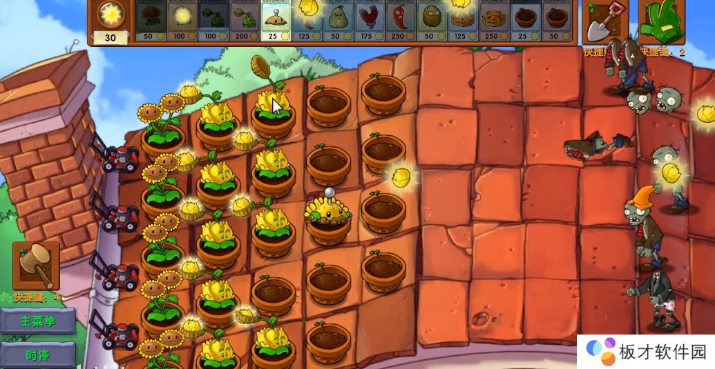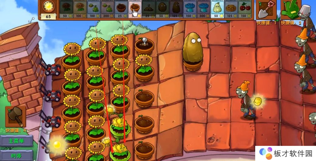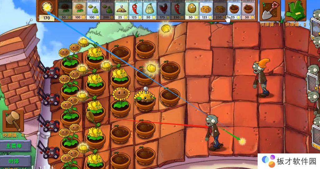 经典塔防模式飞行僵尸无视路线前进,也不会啃咬在路线以外的植物