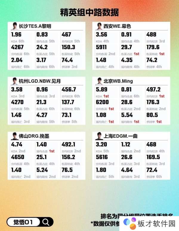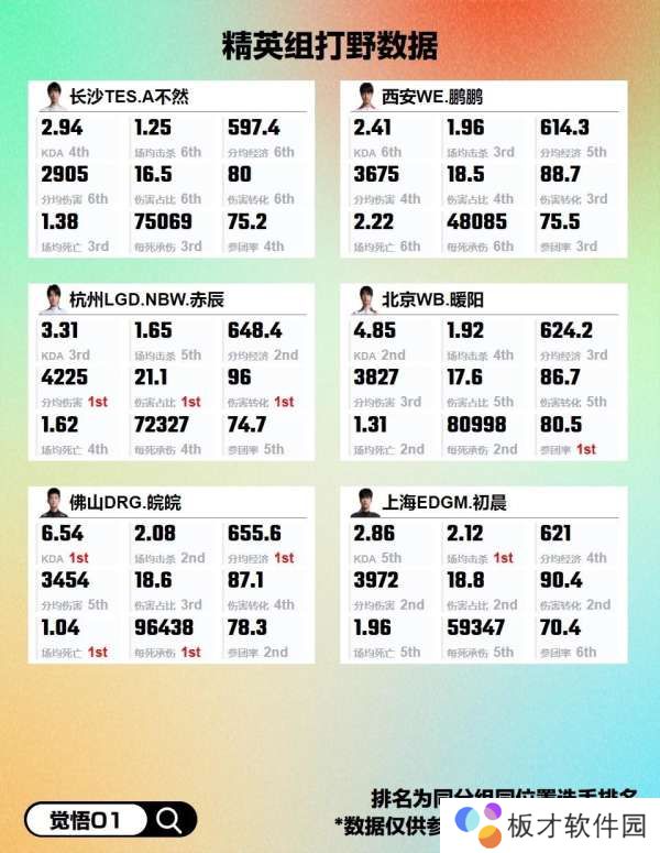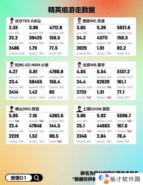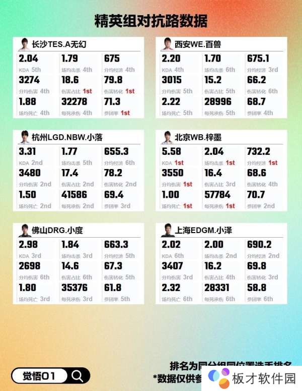 年总擂台赛阶段精英组各位置数据,谁的表现最为亮眼?