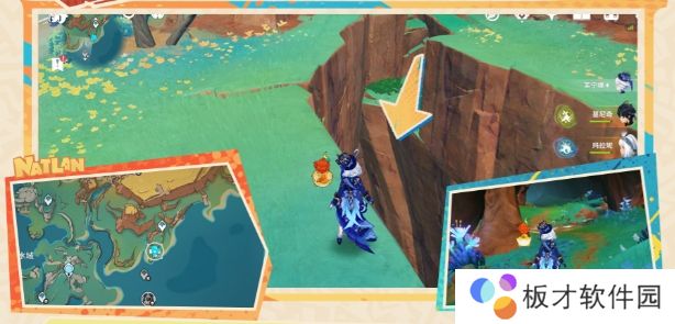 1、来到【彩石顶】南部的岸边,从峡谷下去来到底部,顺着洞窟向南走,就能看见BOSS了。