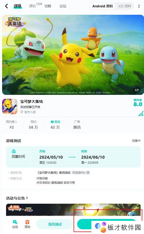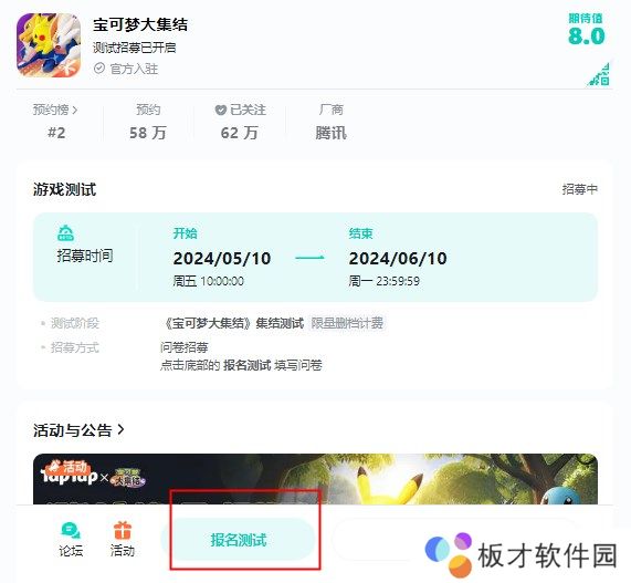 3、点击左侧的【报名测试】就可以参与测试中。
