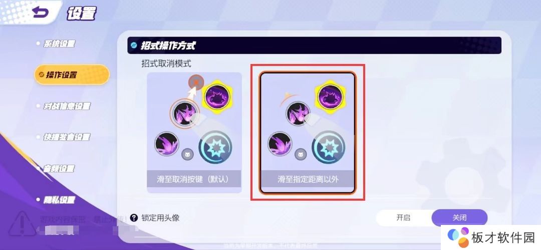 招式取消模式 → 滑至指定距离以外