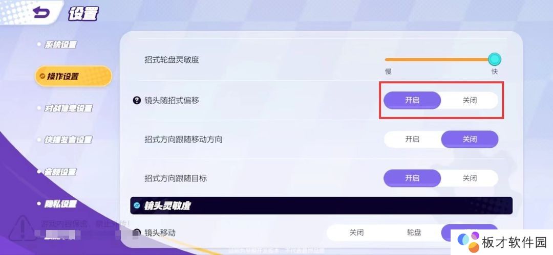 镜头随招式偏移 → 开启