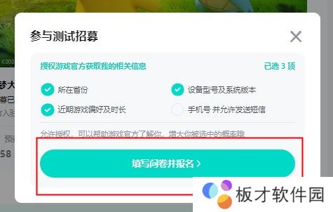 6、然后填写完问卷就可以成功参与测试了。