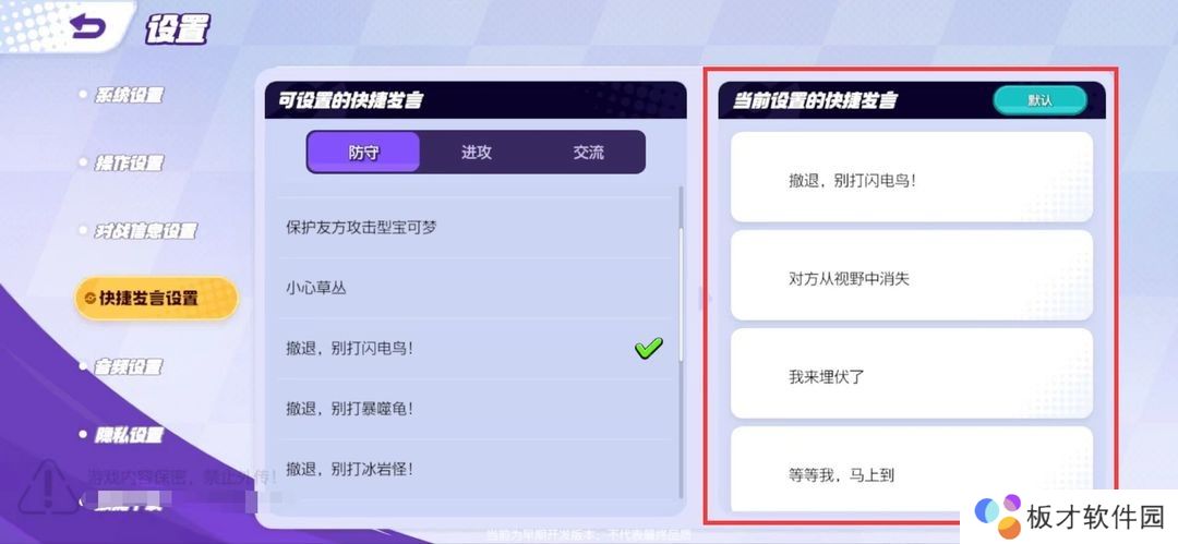 快捷发言设置,默认的快捷发言有很多其实意义不大,这里推荐尽量把发言都换成比较明确的提醒或者是指令,让队友一看就懂,当然队友听不听就是另一回事了。