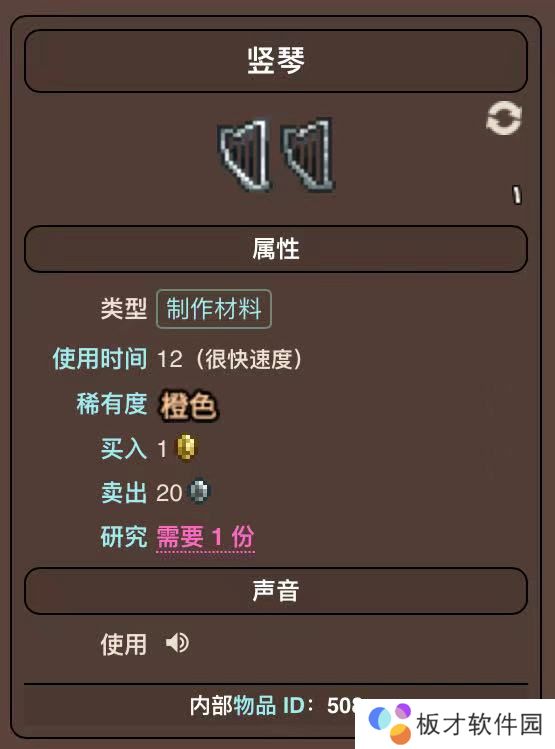 竖琴是一种困难模式的制作材料,仅用于制造魔法竖琴。使用竖琴本身时,它没有什么功能用途,只能产生声音,巫师会以1金币的价格出售他。