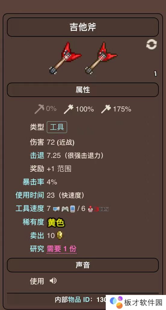 吉他斧是游戏中为数不多的三种乐器武器之一,另两种是魔法竖琴和星星吉他。
