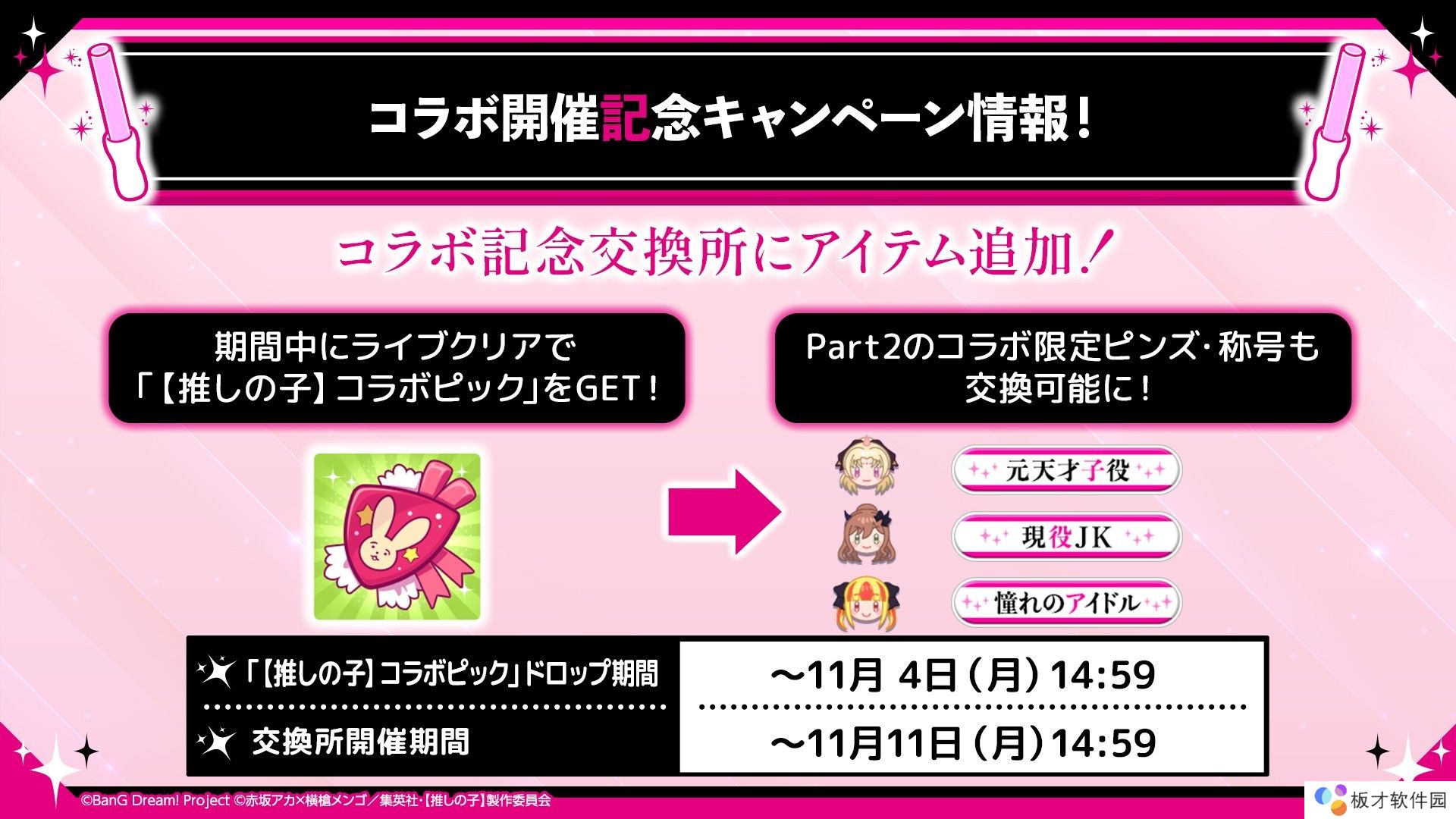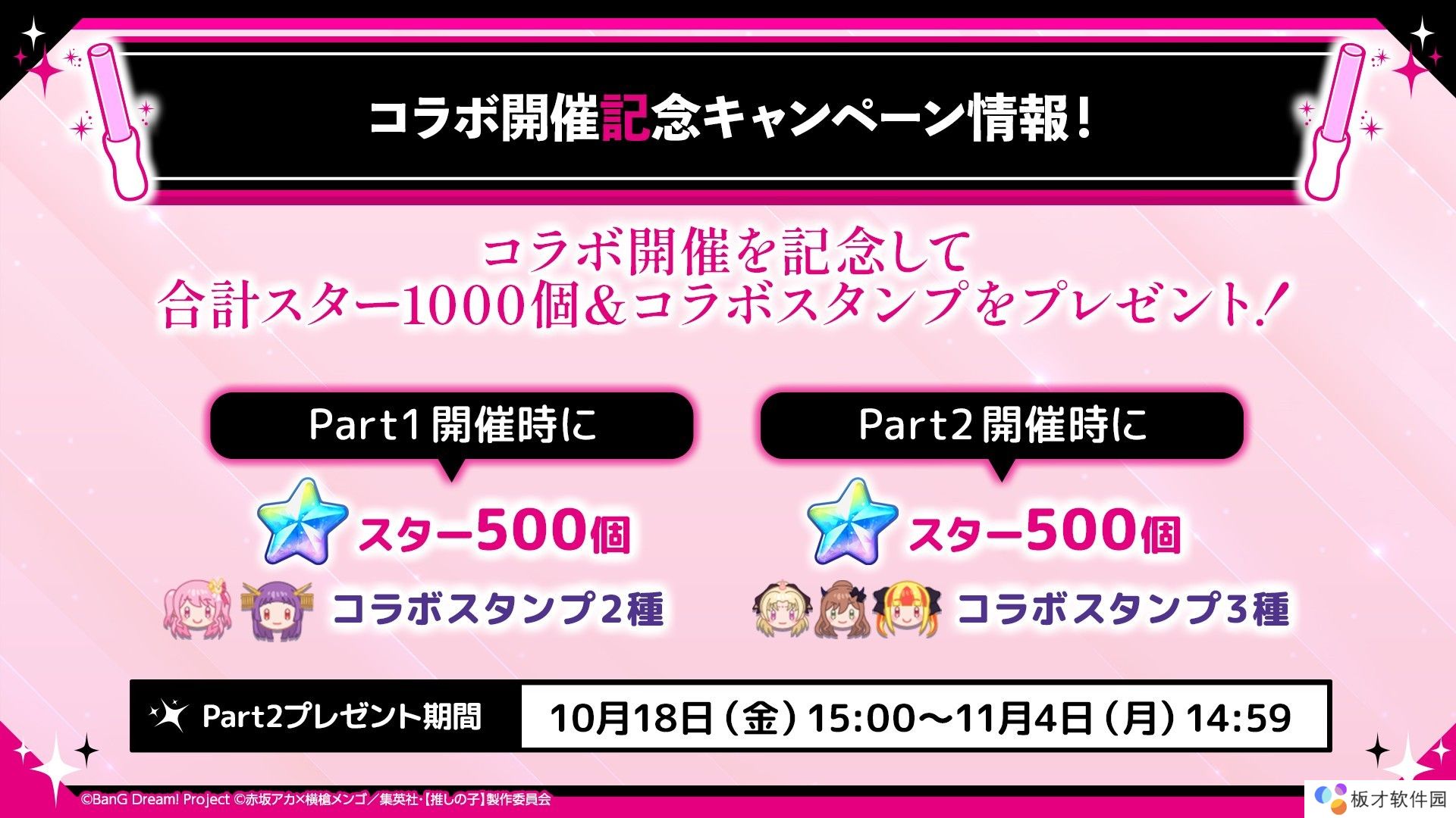 株式会社 Bushiroad 宣布,《BanG Dream!少女乐团派对》日服与《【我推的孩子】》合作 Part2 将于 2024 年 10 月 18 日(五)正式开启。