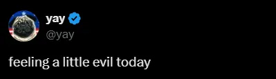 不久之后,yay也发文暗示:感觉今天有点邪恶(evil)