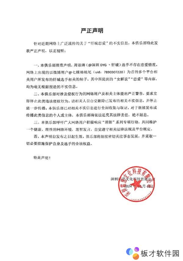 虎扑10月16日讯 DYG严正声明:钎城不存在恋爱情况,“女解说”等为不实信息