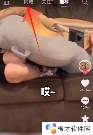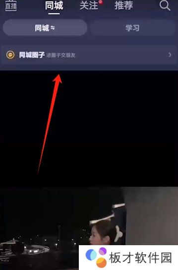 1、首先打开抖音,在抖音上面的栏目里面点击“同城”。