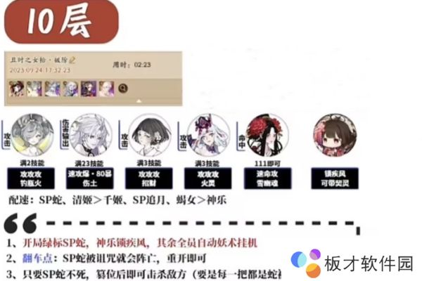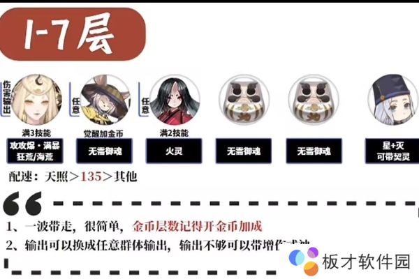 3、1-7层的阵容推荐,输出可以换成任意群体输出,输出不够与可以带增伤式神。