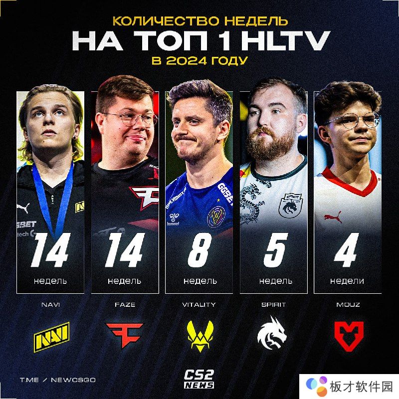 截止HLTV最新世界战队积分排行榜更新(10月14日),NAVI战队已经成为2024年迄今为止占据世界第一宝座最久的战队,长达14周时间。紧随其后的是在今年年初发挥出色的FaZe战队,同样在世界第一宝座维持14周之久。